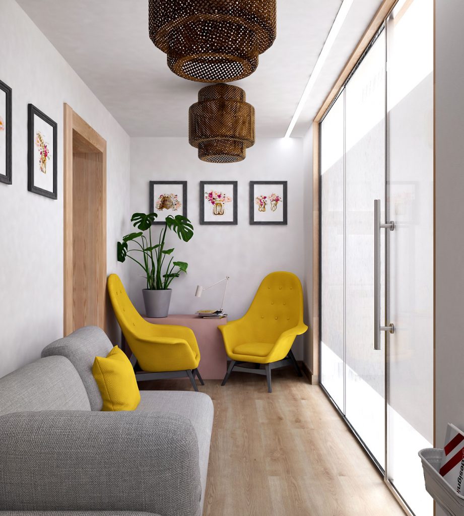 Pentru mulți dintre noi, durerea de dinți e printre cele mai rele, însă în acest proiect am pornit de la visul doamnei doctor, de a nu lăsa durerea dentară să intervină în viețile noastre. Ne-am concentrat și ne-am alăturat acestui vis, creând un peisaj care să nu exprime imaginea clasică a unui cabinet stomatologic, înspăimântător, ci să încurajeze o stare de relaxare, un sentiment de prospețime, veselie, și nu în ultimul rând profesionalism.